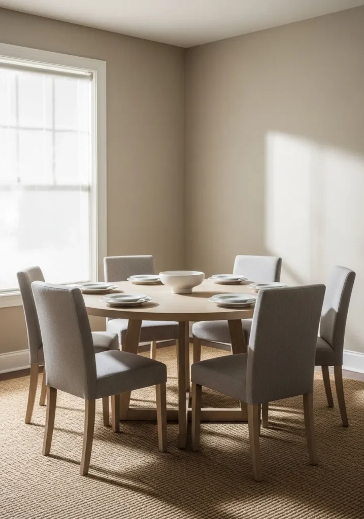 Soft Neutral Dining Area With Gentle Comfort
