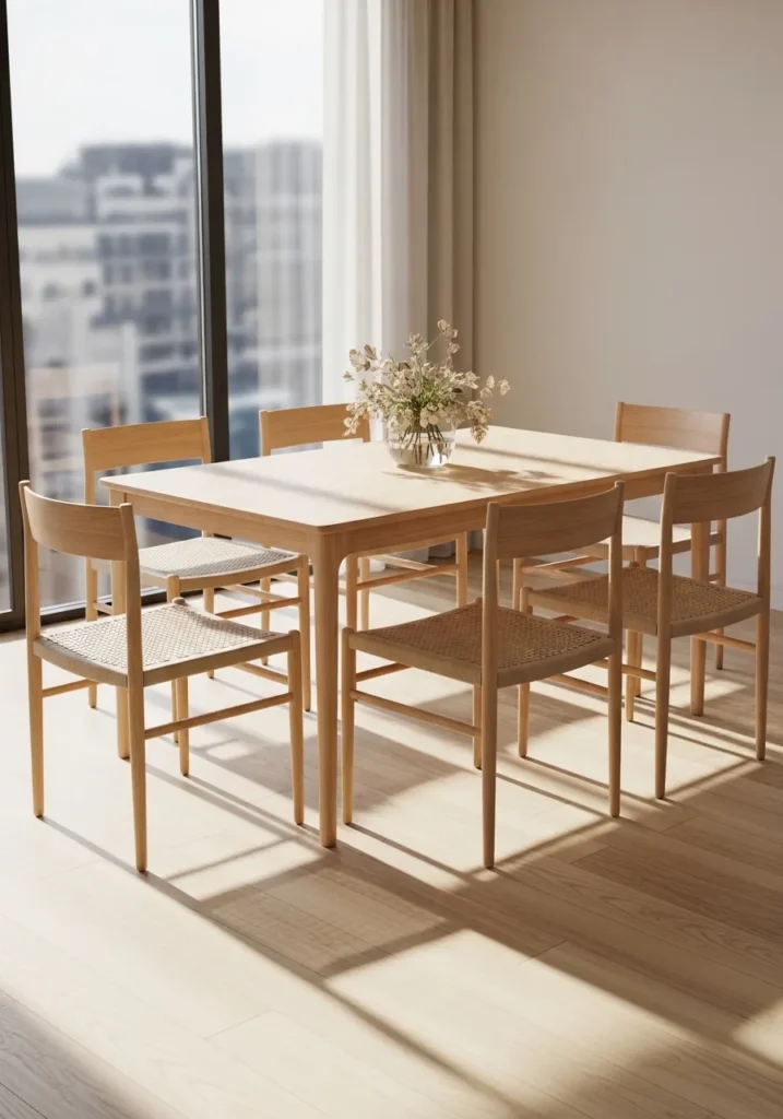 Minimal Wooden Dining Table With Soft Nordic Simplicity