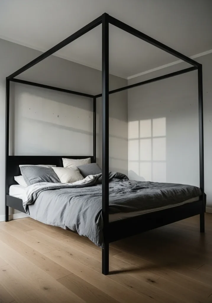 Minimalist Black Canopy Bed with Architectural Edge