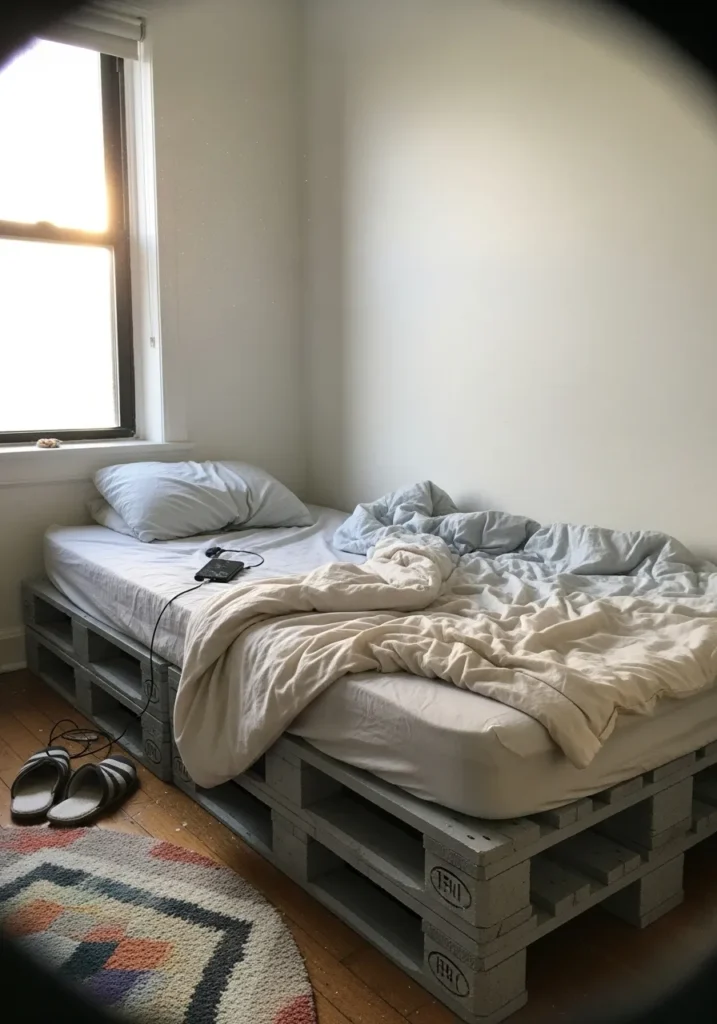 I really love how peaceful this setup feels. It has that slow morning energy that makes you want to stay in bed a little longer. The pallets give the room personality without trying too hard, and the sunlight makes everything feel cozy and real. It is proof that budget friendly can still feel thoughtful and beautiful.
