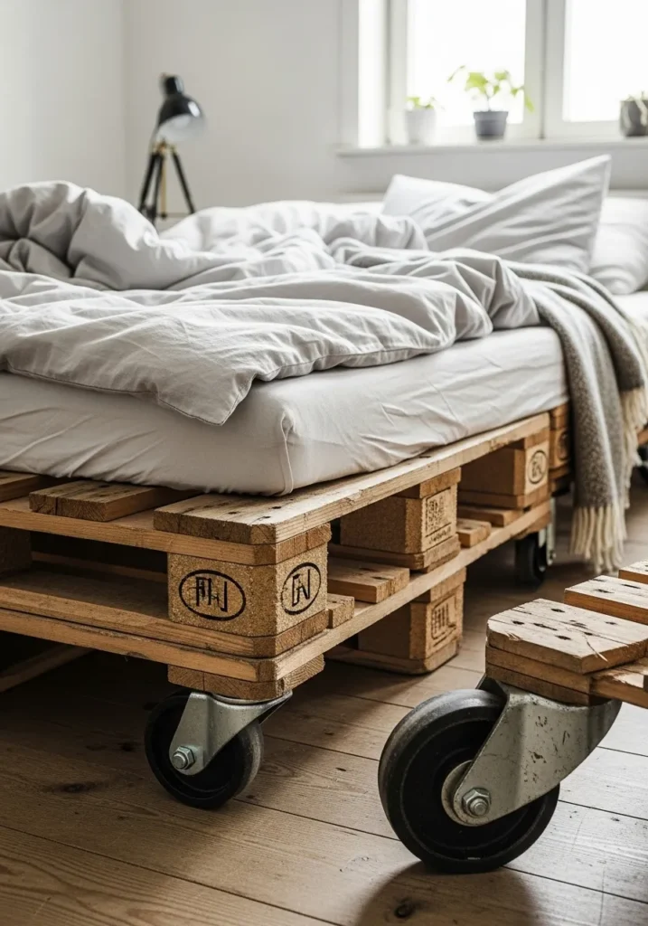 I really like how clever this design feels. The wheels make the bed feel playful and practical at the same time, which is such a refreshing combo. It looks easy to live with and easy to move, and I love how it turns a simple pallet bed into something a little unexpected and totally charming.