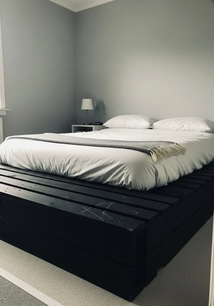I really love how polished this looks while still being budget friendly at heart. The black pallets make the bed feel bold and grounded, almost like a custom piece you would never guess was DIY. It feels quiet and cozy in the best way, and I can totally see this being a go to choice for anyone who loves simple spaces with a little edge.