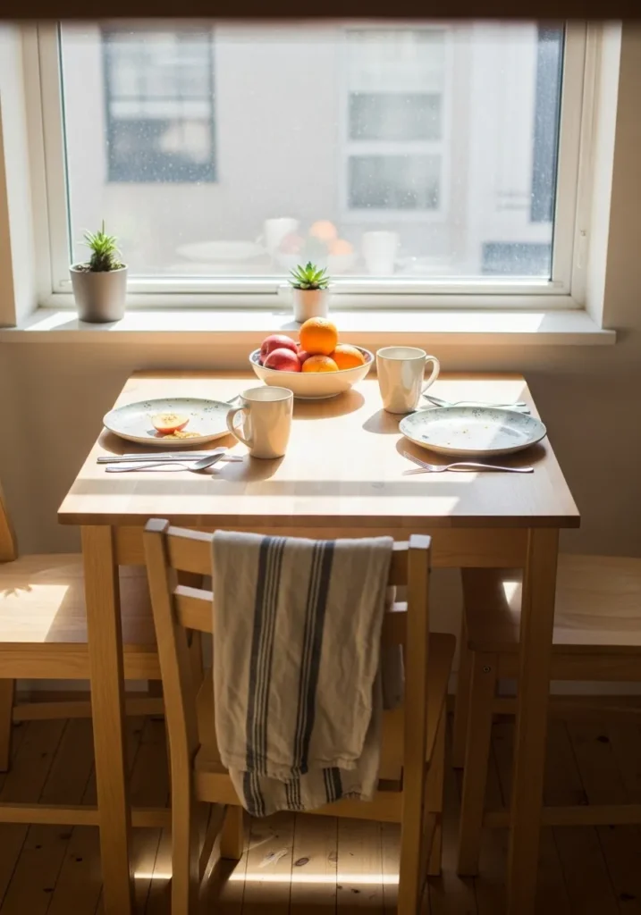 This setup feels light and effortless to me. I can almost imagine slow breakfasts here with the window cracked open. It proves that even the smallest dining spot can feel inviting and stylish.