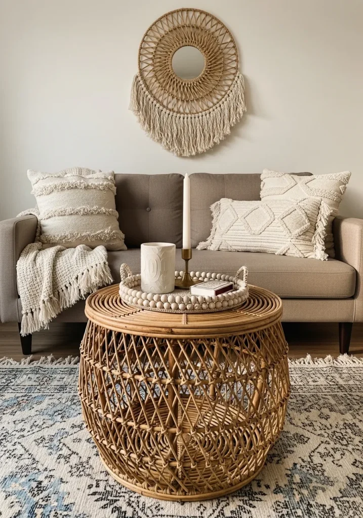 I am completely charmed by how this natural material softens the clean lines of the modern sofa. It adds such a soulful, handcrafted touch that makes a house feel like a home. The way the light passes through the rattan weaves is simply stunning and keeps the room looking bright and sunny. This is definitely my go-to recommendation for anyone wanting to nail that effortless California cool look in a smaller apartment.