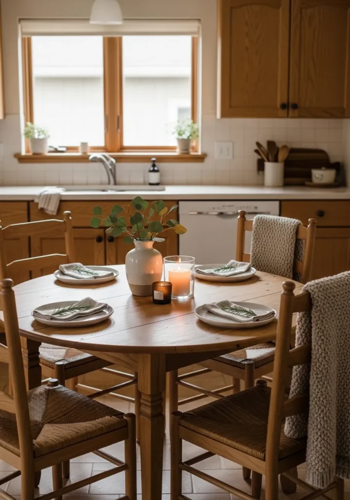 I love how easy this setup feels. It reminds me that cozy does not need layers of decor or bold colors. Just good light a solid table and a few thoughtful details can make daily dinners feel special without any effort.