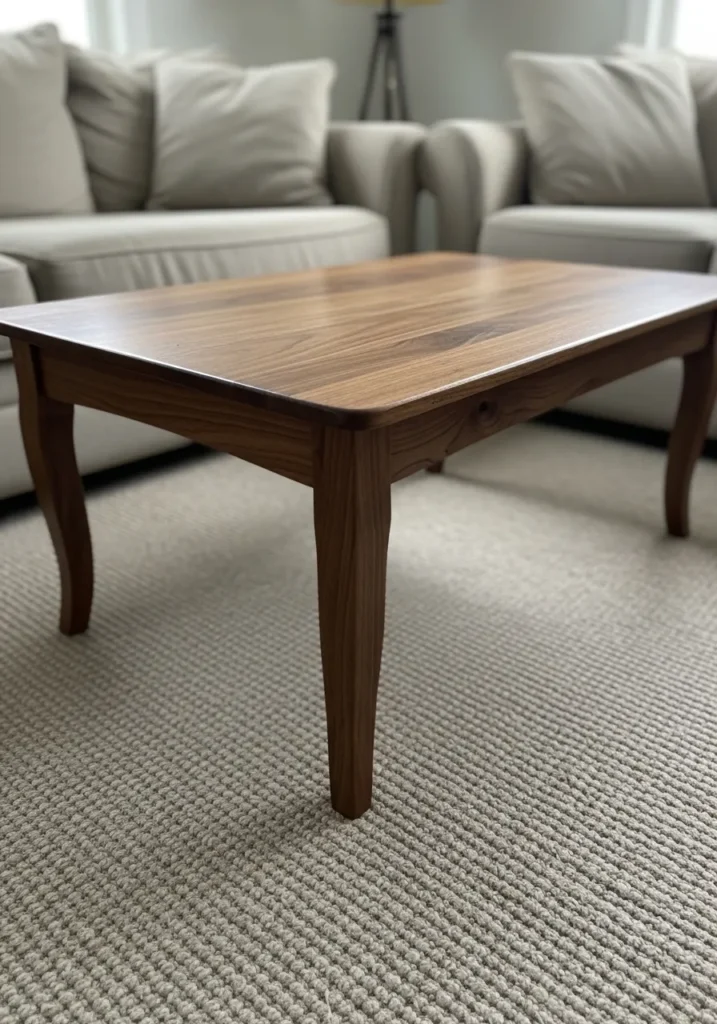 This design features a solid wood construction with a rich grain that instantly makes a living room feel more inviting. The rectangular top provides plenty of surface area for styling your favorite magazines or a tray of snacks, while those elegantly curved cabriole legs add a touch of traditional flair. It sits at a comfortable height, making it super functional for everyday life. The natural honey tones of the walnut contrast beautifully against the light neutral tones of a plush textured rug and soft cream sofas.