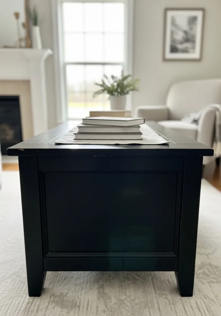 I am completely hooked on the way this table adds a touch of mystery and weight to a space without being overwhelming. If you’re the type who needs a place to hide extra throw blankets or board games while still looking like a decor pro, then this is your new best friend. It has a super chic and commanding presence that feels like it belongs in a high-end design magazine. I love how it proves that going dark with your furniture can actually make a light room feel even more balanced and intentional.