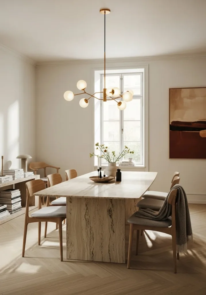 This kind of design really speaks to me on busy days. I love how calming it feels without being boring. The marble still adds texture and interest, but nothing feels overdone. It is the kind of room that makes me want to slow down and enjoy a quiet meal.