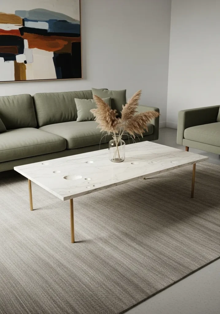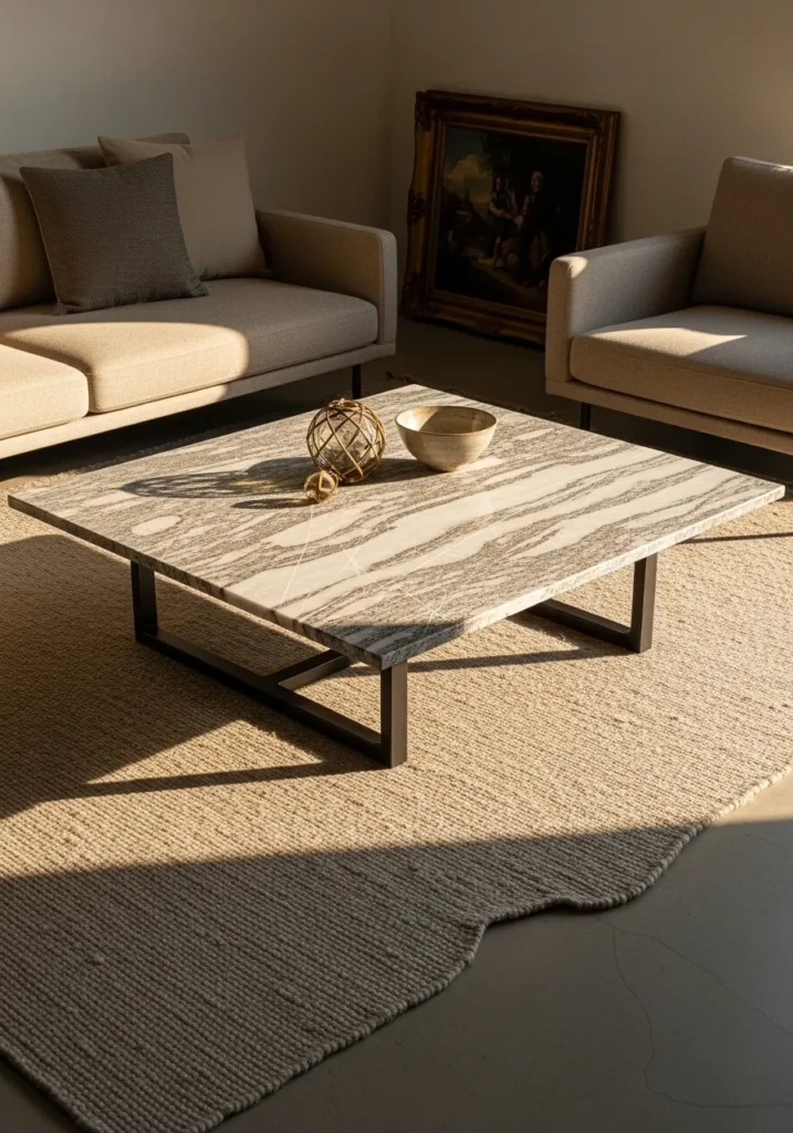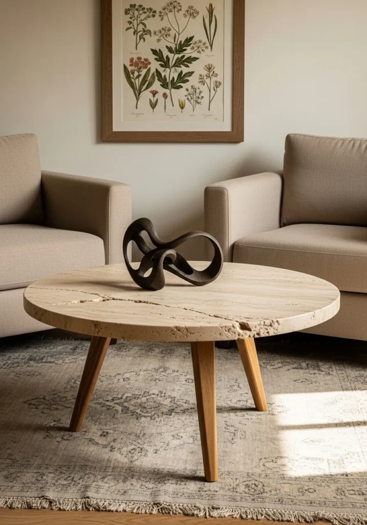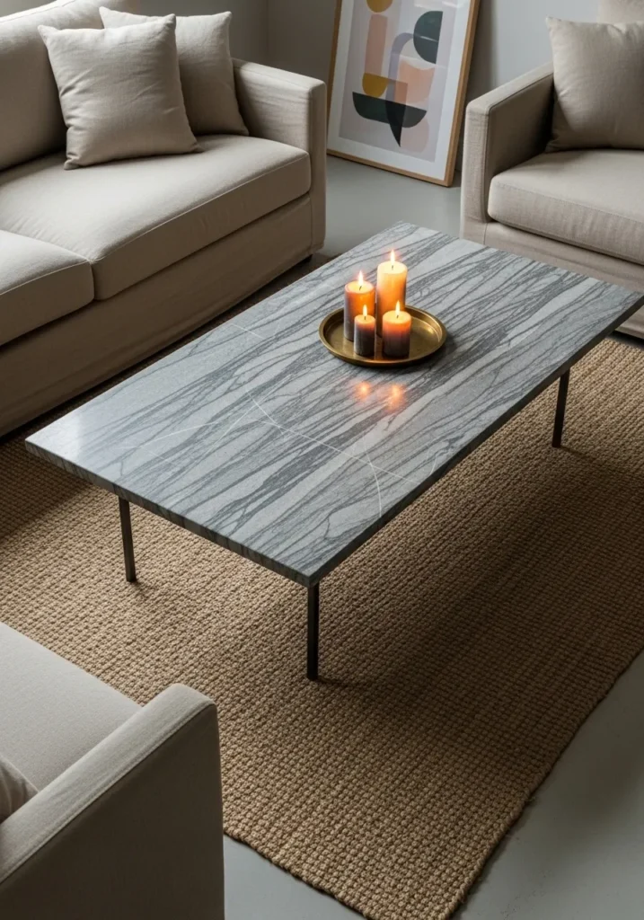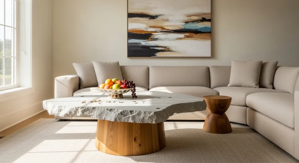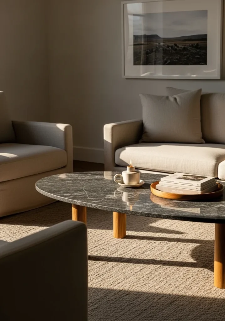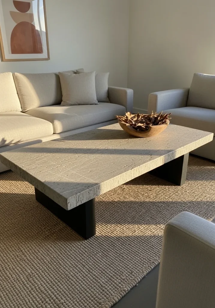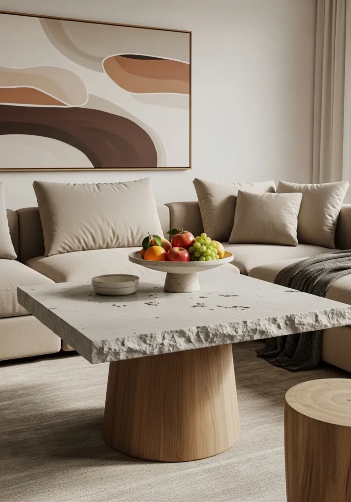 I like how a well-chosen stone table can anchor a living room while giving it a touch of sophistication.