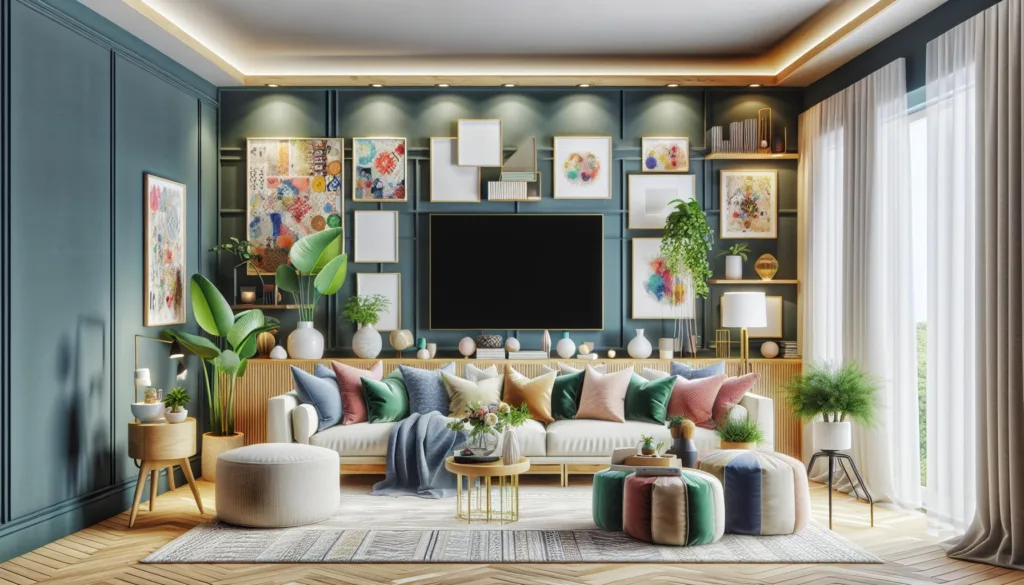 Når du har tenkt gjennom funksjonelle møbler og oppbevaringsløsninger, er det neste steget å legge til Personlig preg og dekorasjon i din TV-stue. Dette handler ikke bare om estetikk, men også om å skape et rom der du føler deg hjemme og kan slappe av. Start med å velge en fargepalett som speiler din personlige stil og skaper den rette atmosfæren. Varme farger kan gjøre rommet koselig, mens kule farger kan gi en rolig og samlende effekt.