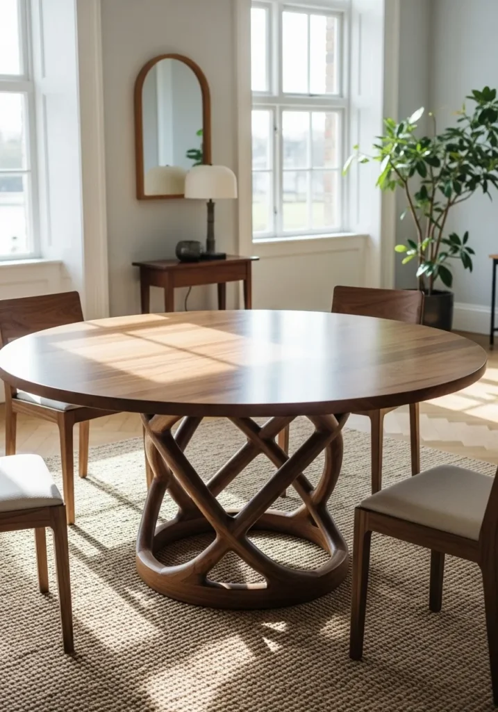 A round dining table instantly changes the flow of a room, and this one really stands out thanks to its sculptural base. The curved form softens the space and works beautifully with the natural light. Paired with simple chairs and minimal decor, the table becomes the quiet star of the room.