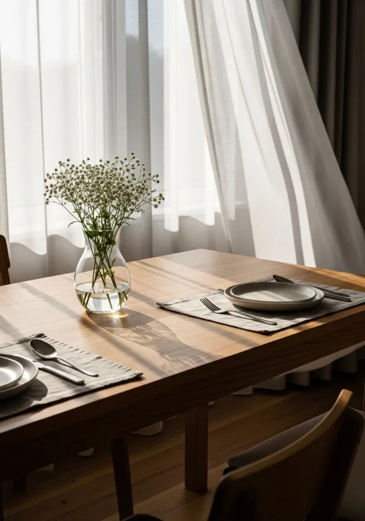 Minimal Dining Table With Sunlit Simplicity