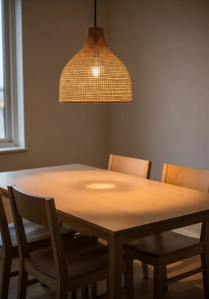 Cozy Square Table With Woven Pendant Warmth