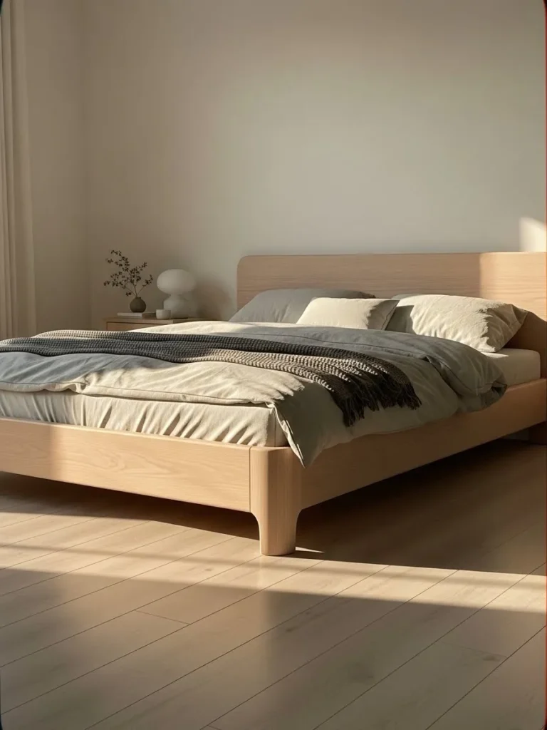 Minimal Oak Bed Frame With a Calm Sunlit Look