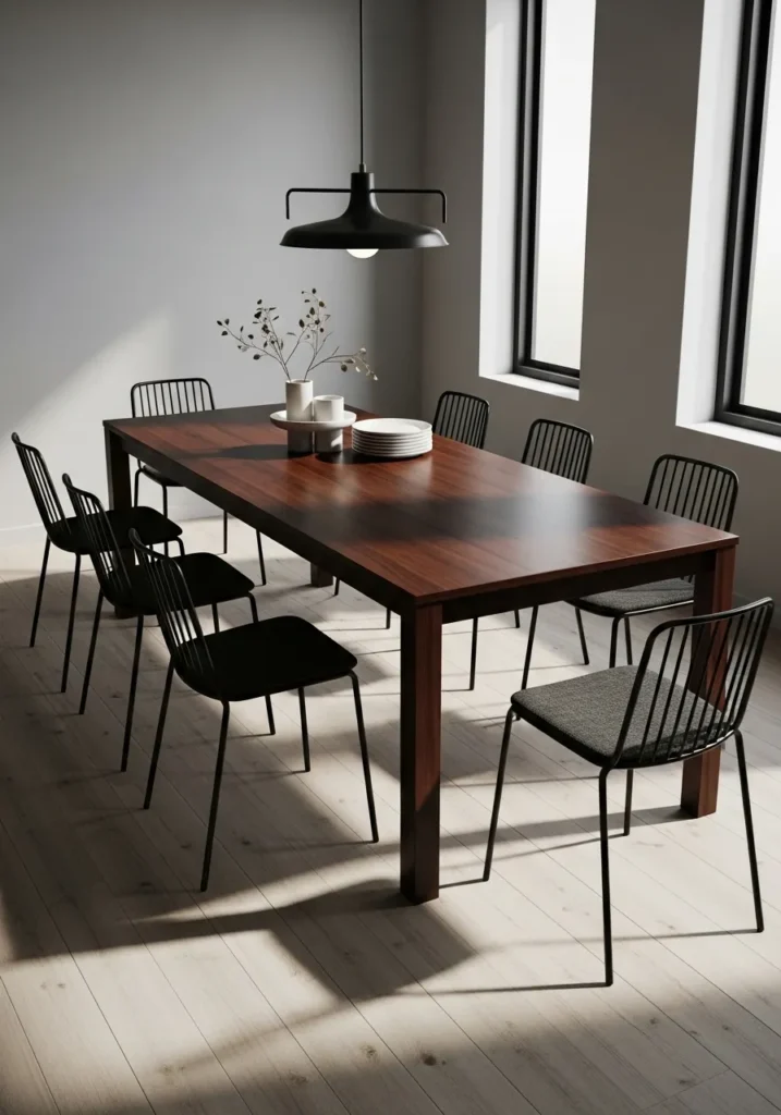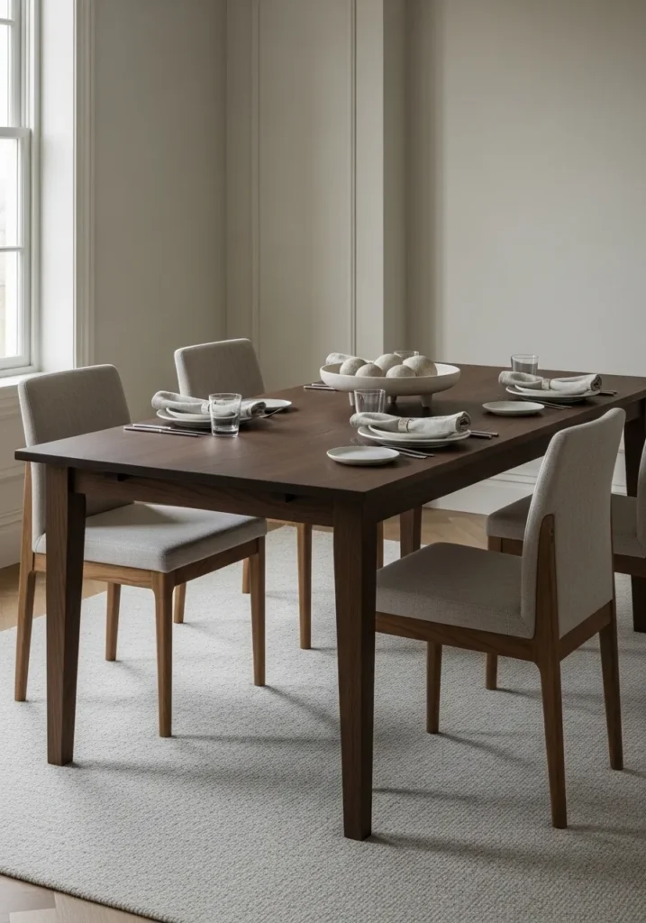 Sleek Dark Wood Dining Table With Minimal Chairs