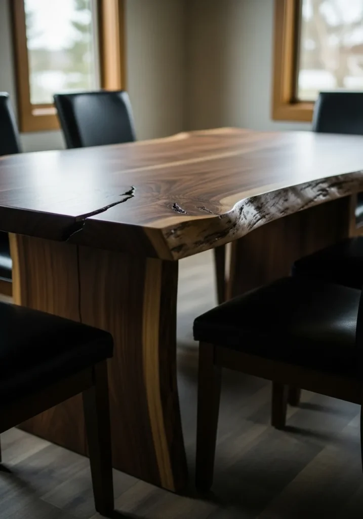 Live Edge Dark Wood Table With Organic Texture
