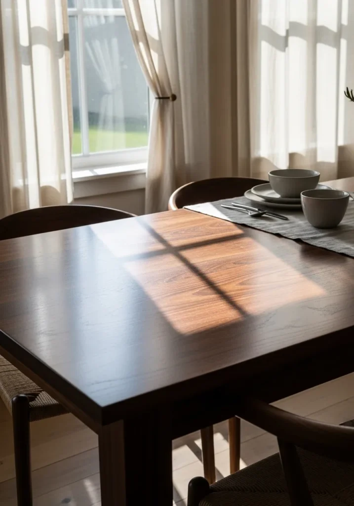 Classic Dark Wood Table With Soft Natural Light