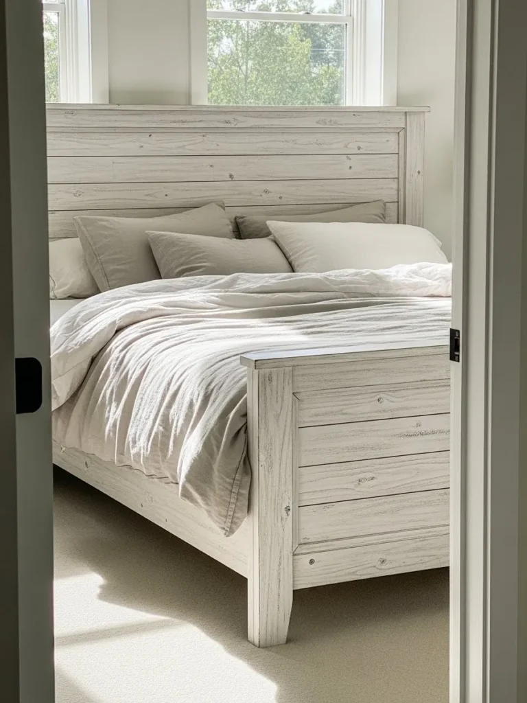 Soft Washed Wood Bed Frame With Cozy Farmhouse Charm