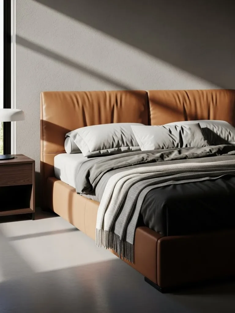 Caramel Leather Bed Frame With Modern Luxe Vibes