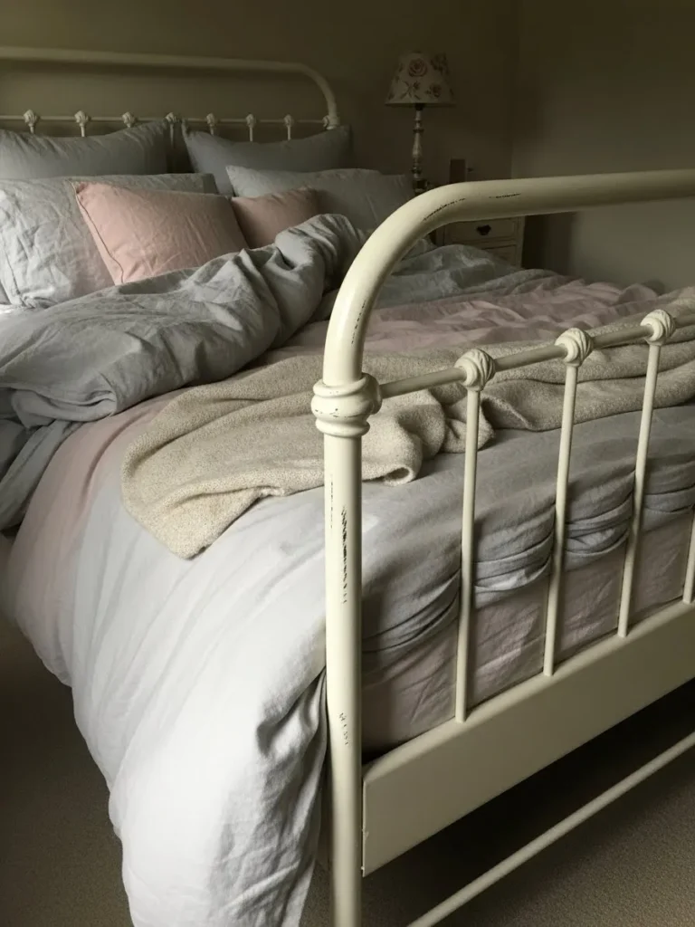 Vintage Metal Bed Frame With Soft Cottage Charm