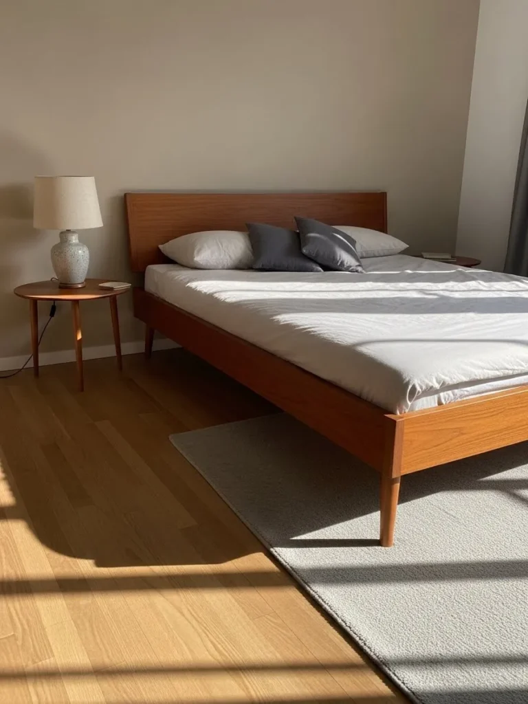 I absolutely adore how this platform design lets the gorgeous wood flooring truly shine through You know those beds that just disappear into the background while letting your bedding and artwork take center stage Well this one does that perfectly If you live in a smaller space or just prefer a super uncluttered vibe this low-profile frame is your best friend for creating an airy yet grown-up retreat. It’s seriously stylish without trying too hard.
