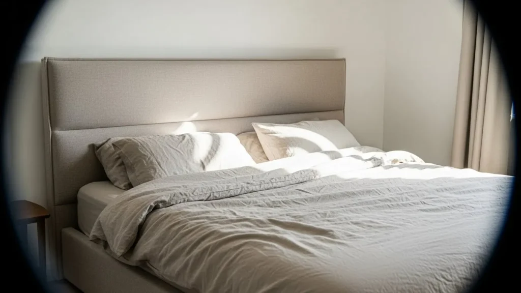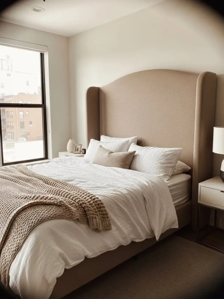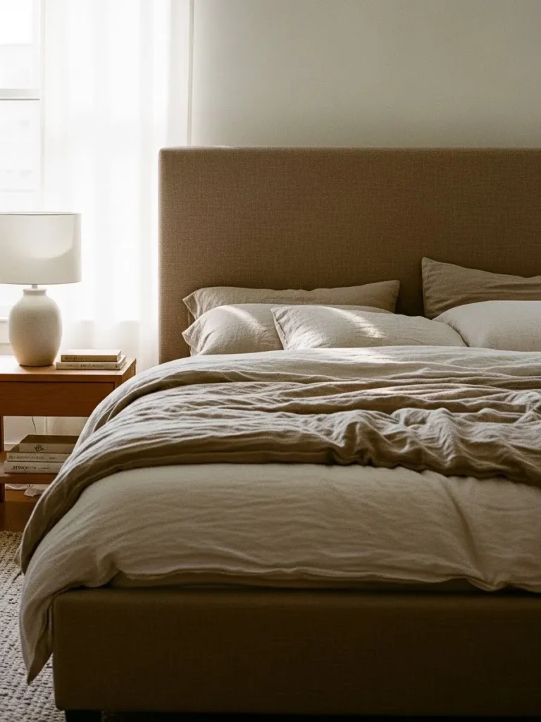 I love this kind of bed because it feels like slipping into a boutique hotel every single night. The fabric looks so soft and welcoming and it instantly makes the room feel more polished. It is simple in the best way and lets the bedding and natural light do the talking. This is the type of bed that makes rest feel intentional and a little luxurious.