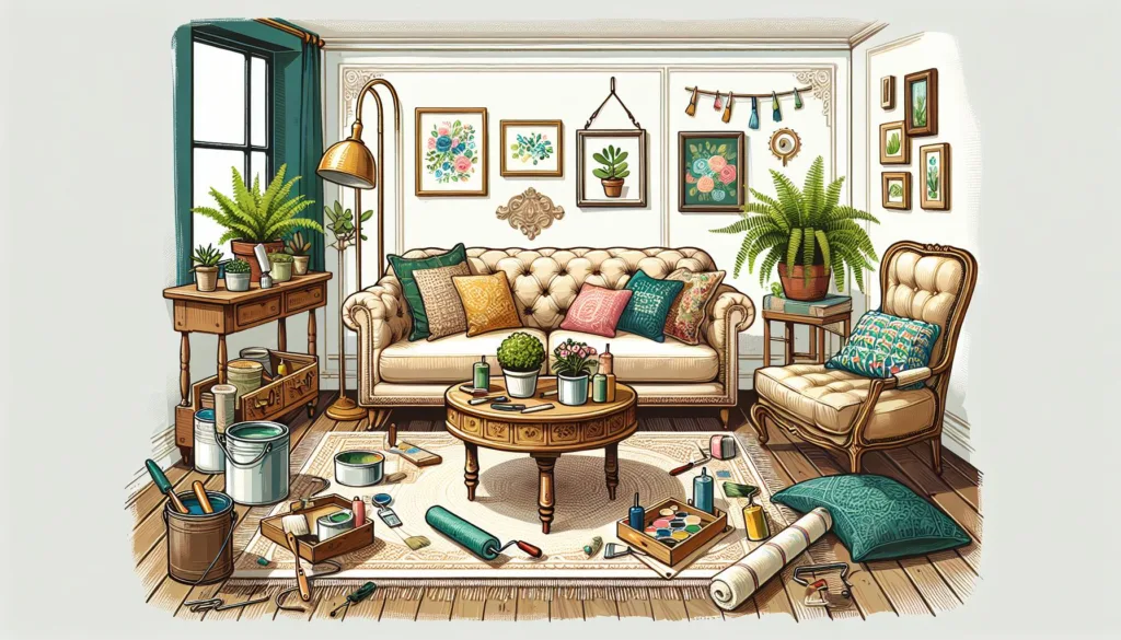 Utover maleri, vurder å pusse opp eller modernisere eldre møbler. Et strøk maling eller nytt stoff på en gammel stol kan gi hele stuen et nytt liv. Det kan også være lurt å se etter gjenbrukbare materialer som gamle treplanker som kan transformeres til en elegant veggdekorasjon eller hylle.