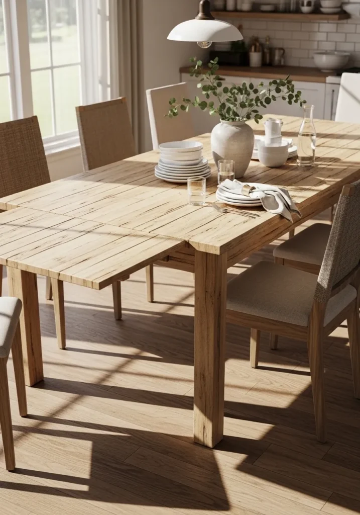 I really appreciate how real this table feels. It looks ready for both quiet mornings and lively dinners. That kind of flexibility is exactly what makes an extendable table such a smart and beautiful choice.