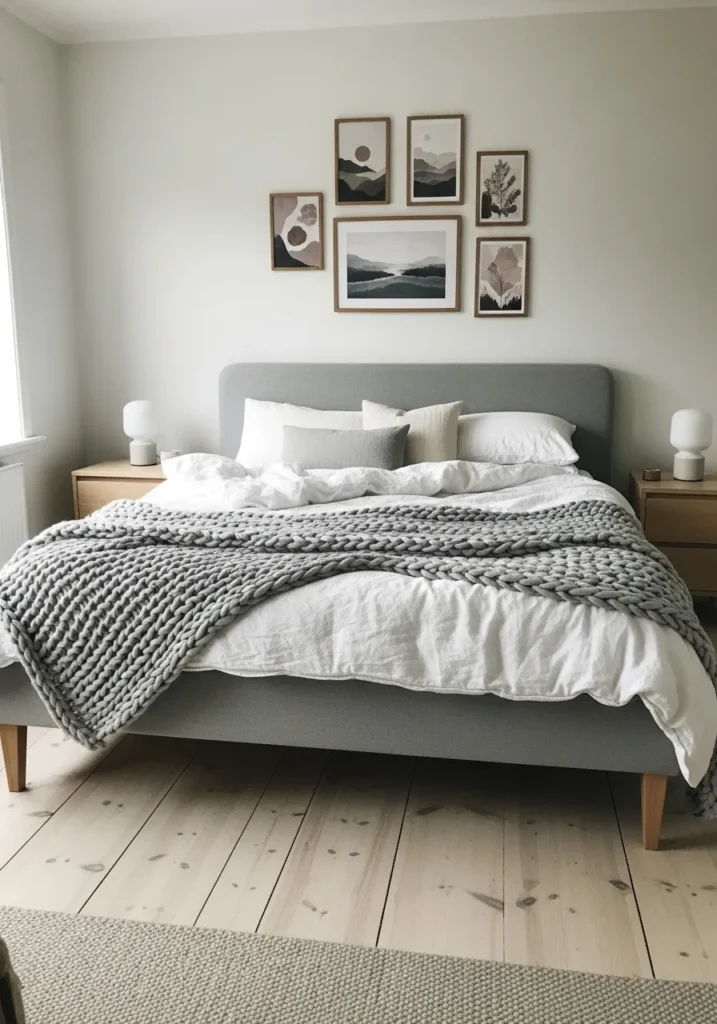 Soft Scandinavian Comfort With a Fabric Bed Frame