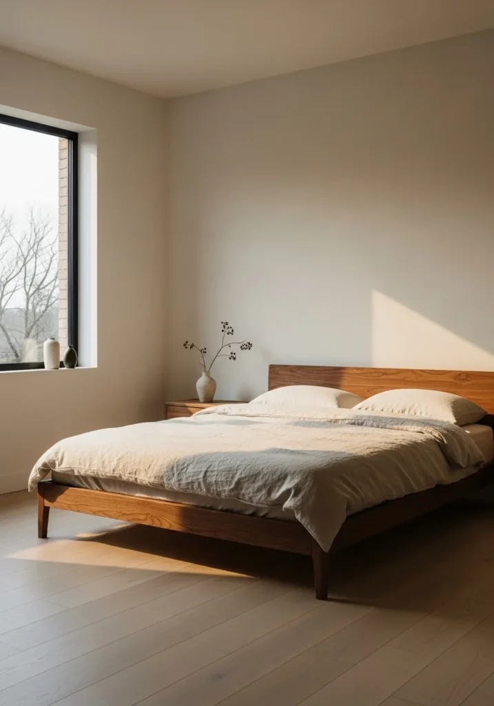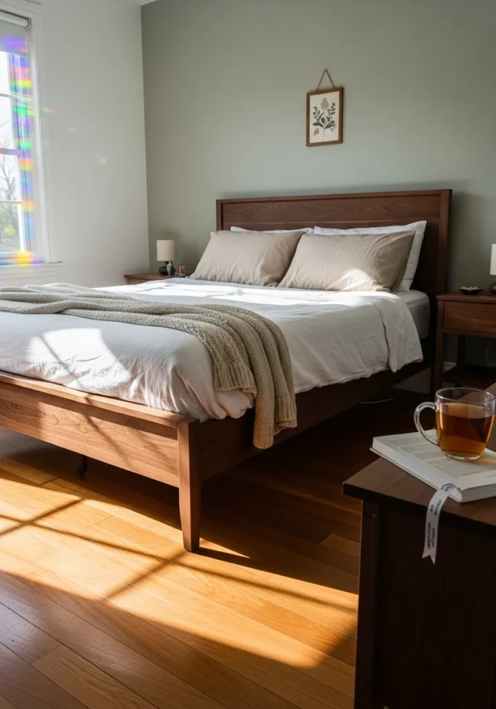 Quiet Morning Mood With a Simple Walnut Bed Frame