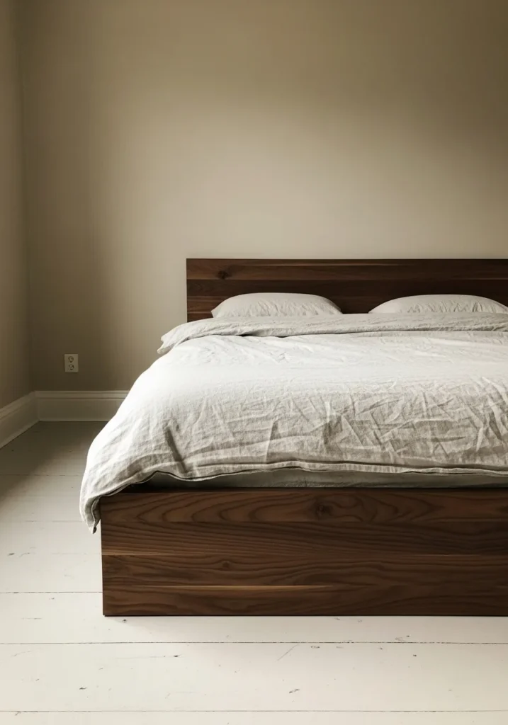 Minimal Warm Walnut Bed Frame With Calm Neutral Styling