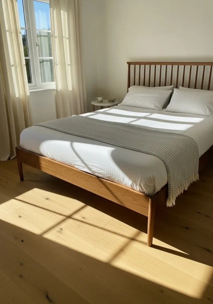 Sunlit Simplicity With a Warm Walnut Bed Frame