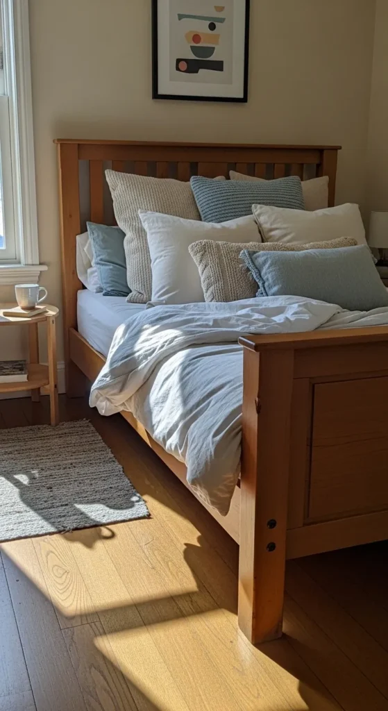 I put together these ideas to show how a simple wood bed frame can quietly steal the show and make a room feel like home.