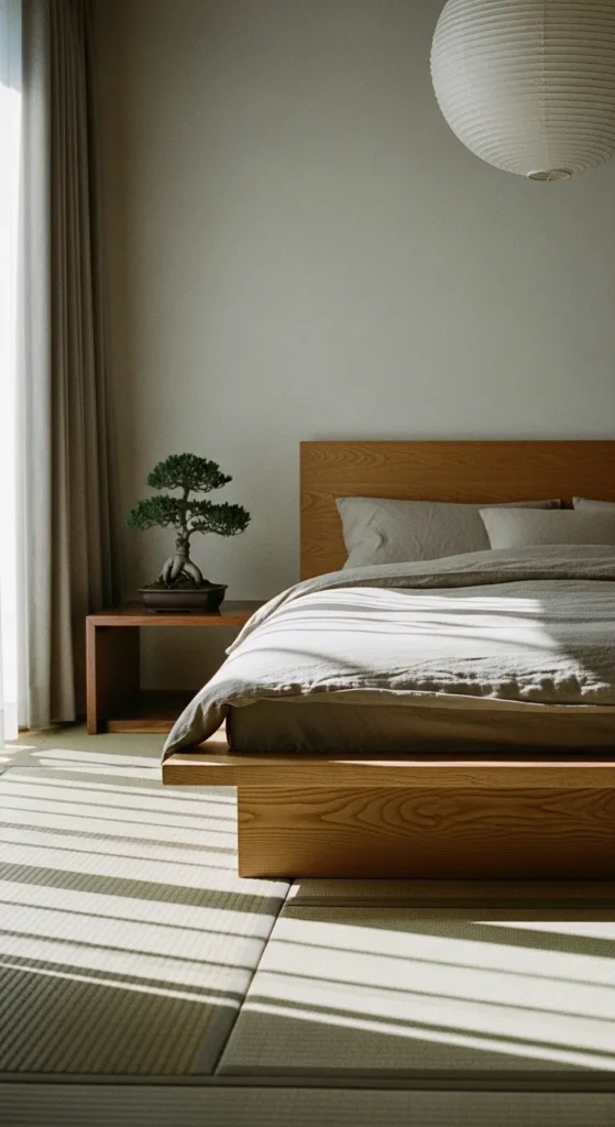 Sunlit Minimal Bedroom With a Warm Oak Bed Frame