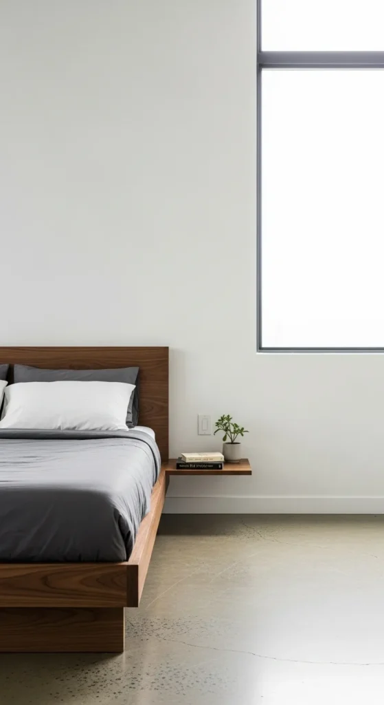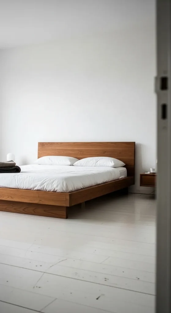 Modern Minimal Bedroom With a Floating Wood Bed Frame