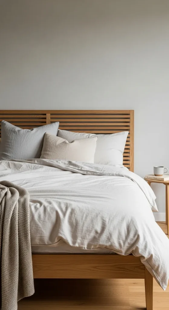 I really love how fresh and timeless this look feels. The slatted wood adds just enough interest while staying relaxed and easy on the eyes. If you are into bedrooms that feel light, cozy, and never overdone, this one totally delivers. It feels like the kind of space that always looks good and always feels good, no matter the season.